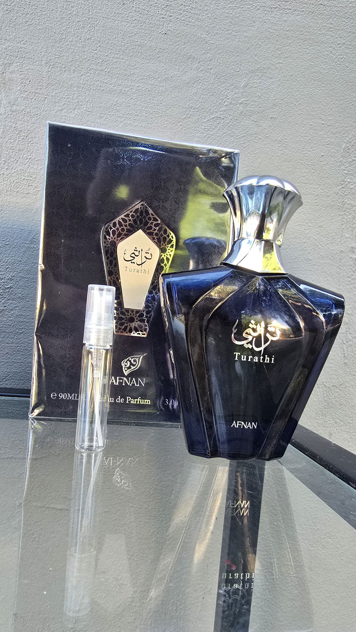Turathi Blue de Afnan es una fragancia de la familia olfativa Aromática Acuática para Hombres. Turathi Blue se lanzó en 2021. La Nariz detrás de esta fragrancia es Imran Fazlani. La Nota de Salida es cítricos; las Notas de Corazón son ámbar y notas amaderadas; las Notas de Fondo son almizcle, especias y pachulí.