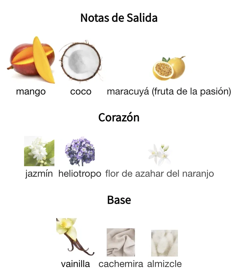 Yara Tous de Lattafa Perfumes es una fragancia de la familia olfativa para Mujeres. Esta fragrancia es nueva. Yara Tous se lanzó en 2023. Las Notas de Salida son mango, coco y maracuyá (fruta de la pasión); las Notas de Corazón son jazmín, heliotropo y flor de azahar del naranjo; las Notas de Fondo son vainilla, cachemira y almizcle.