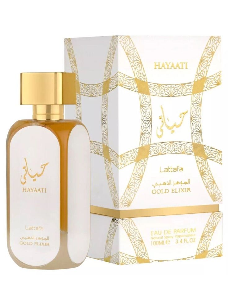 Hayaati Gold Elixir de Lattafa Perfumes es una fragancia de la familia olfativa para Hombres y Mujeres. Las Notas de Salida son bergamota, toronja (pomelo) y casis (grosellero negro); las Notas de Corazón son cuero, durazno (melocotón) y azafrán; las Notas de Fondo son vainilla, ámbar, almizcle y vetiver.