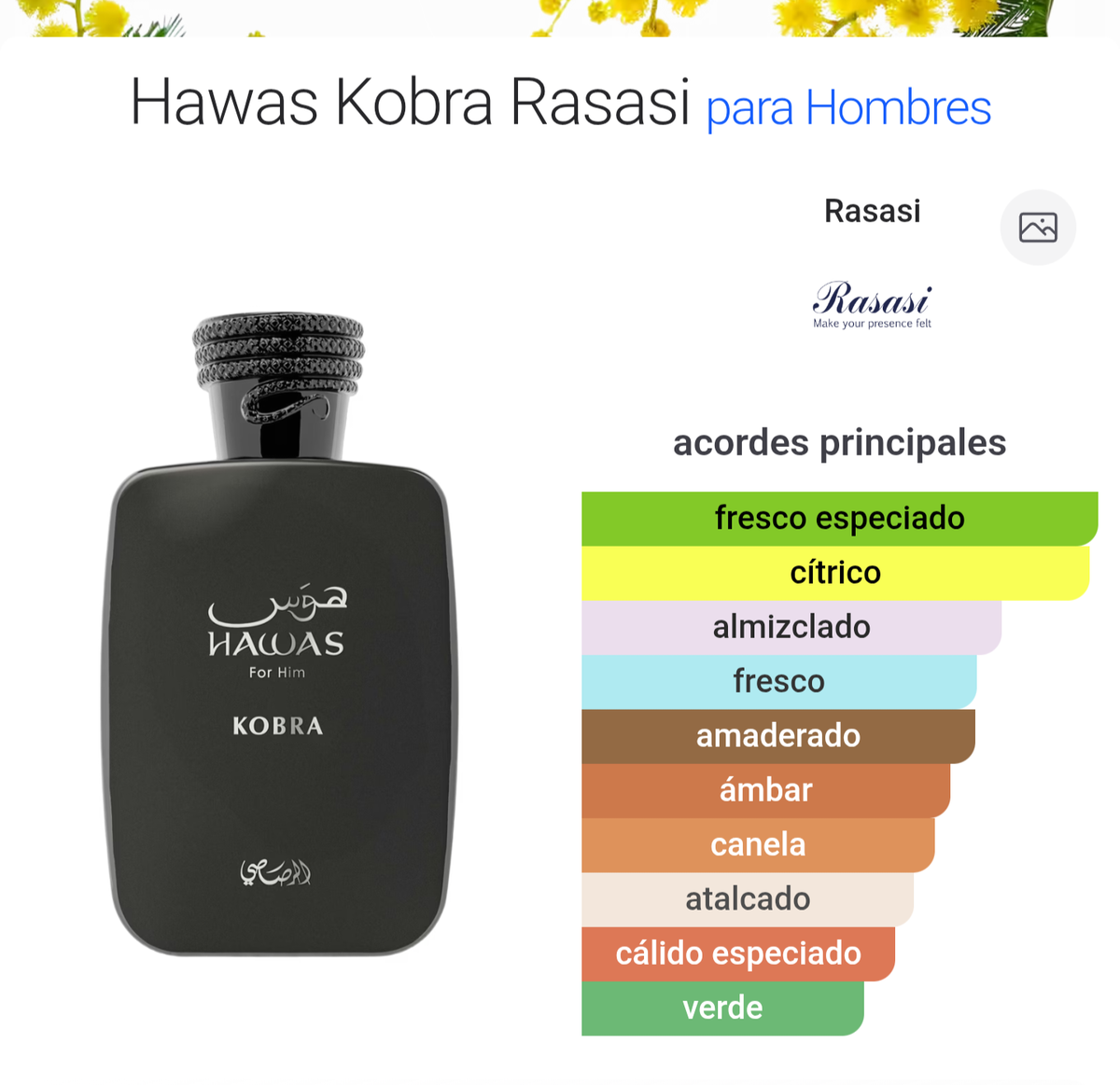 Las Notas de Salida son jengibre, bergamota y naranja tangerina; las Notas de Corazón son canela, neroli y té verde; las Notas de Fondo son almizcle, notas amaderadas y ámbar.