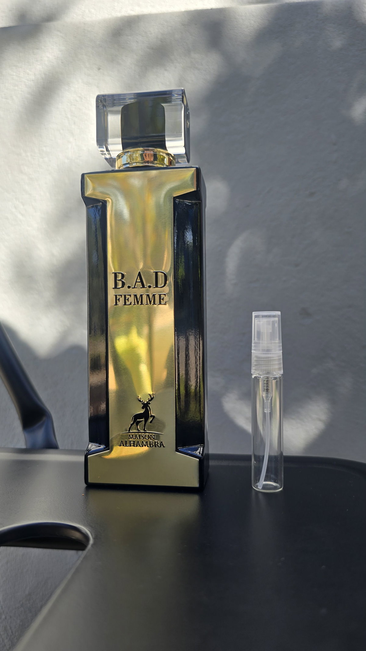 B.A.D. Femme de Maison Alhambra es una fragancia de la familia olfativa Floral Frutal Gourmand para Mujeres. B.A.D. Femme se lanzó en 2022. Las Notas de Salida son bergamota, almendra, café y limón (lima ácida); las Notas de Corazón son nardos, flor de azahar del naranjo, jazmín sambac (sampaguita), rosa de Bulgaria (rosa Damascena de Bulgaria) y raíz de lirio; las Notas de Fondo son haba tonka, vainilla, almizcle, cacao, praliné, sándalo, madera de cachemira, ámbar, pachulí, cedro y canela.