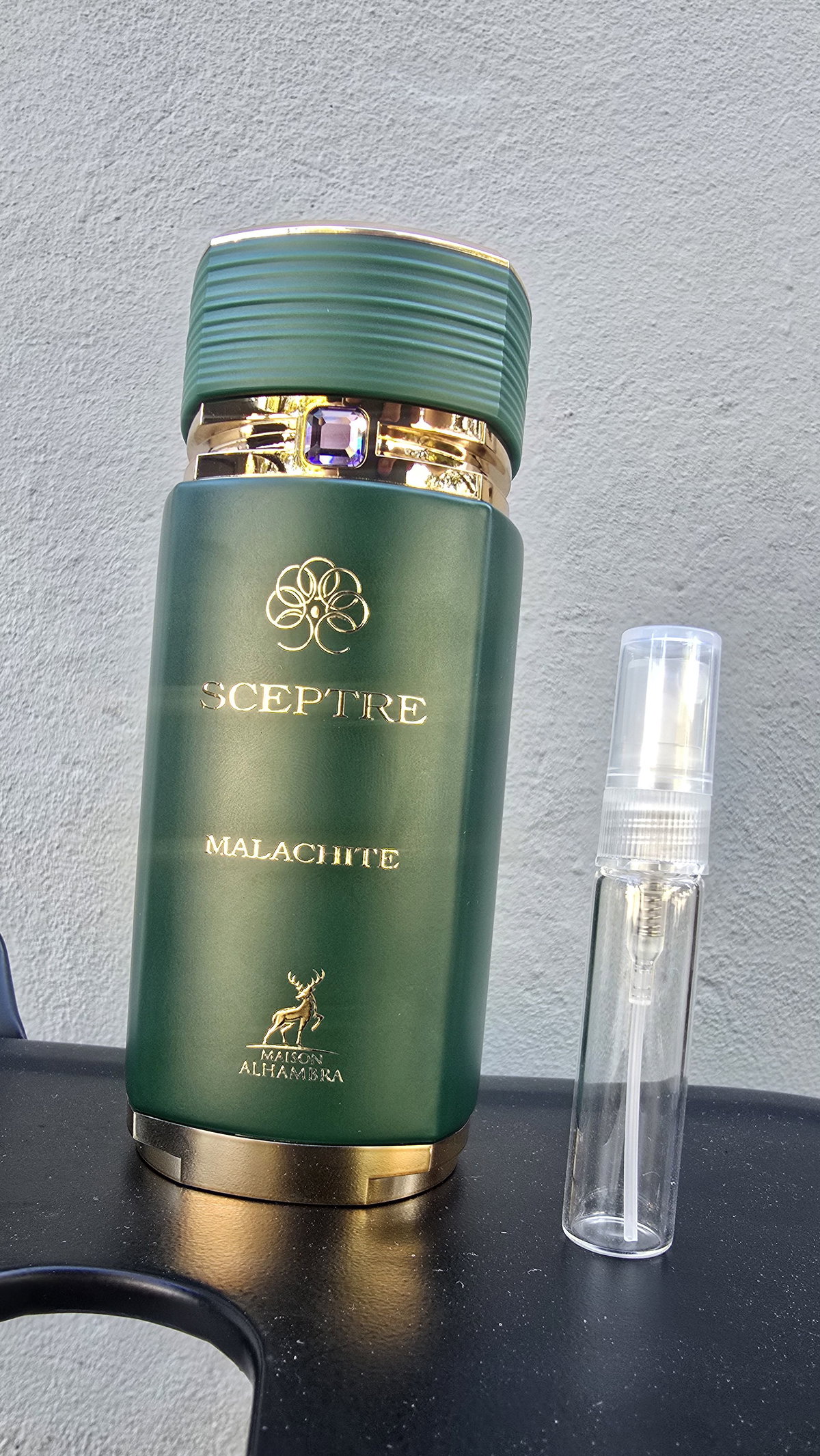 Sceptre Malachite de Maison Alhambra es una fragancia de la familia olfativa Oriental Amaderada para Hombres y Mujeres. Sceptre Malachite se lanzó en 2022. Las Notas de Salida son Mandarina verde, bergamota y grosellas negras; las Notas de Corazón son Notas aromáticas, notas especiadas, jazmín, pimienta rosa y lavanda; las Notas de Fondo son ámbar, almizcle, notas amaderadas y vetiver.